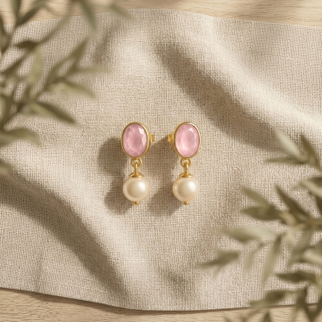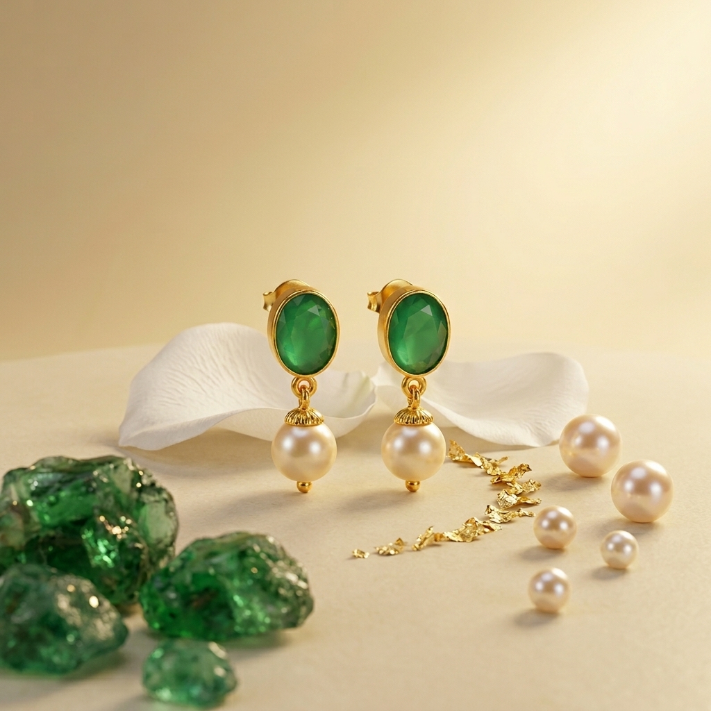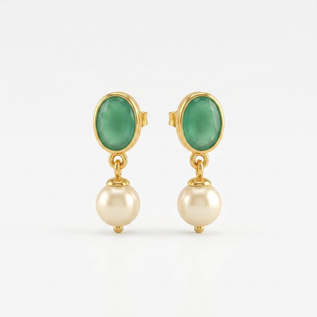 oval STONE pearl earrings